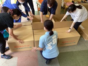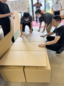 ダンボールベッドとパーテーションの組み立てから